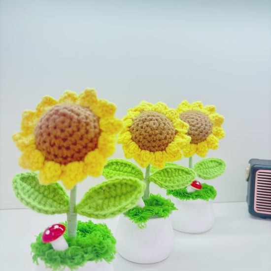 Embrace the timeless beauty of sunflowers with this exquisite hand-crocheted bouquet. Designed to capture the bold and cheerful spirit of these beloved flowers, each stem is a work of art. This arrangement offers all the joy of a fresh bouquet with the lasting power of a handmade heirloom.