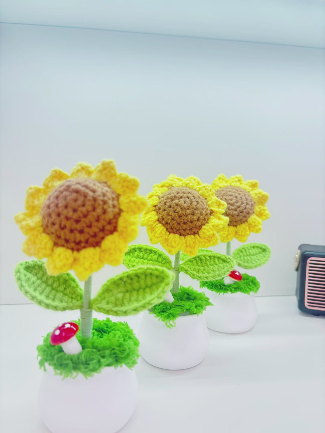 5 crocheted sunflower potted plants
